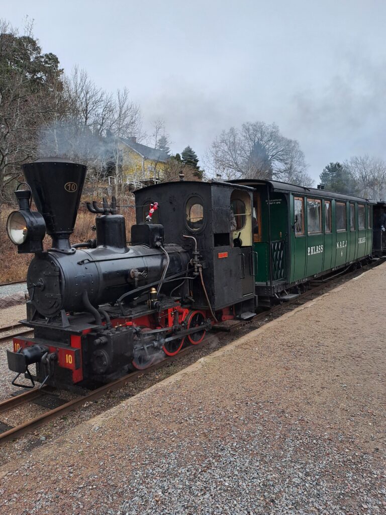 Hos oss kan du göra en historisk resa med 100 år gamla smalspåriga ångtåg på sträckan