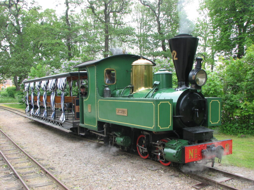 Helgenäs byggdes av Hudswell, Clarke & Co 1889 åt Eds bruk, Västervik. Det ställdes av på 1930-talet och skänktes till ÖSlJ 1965. Efter omfattande upprustning användes Helgenäs från 1970, främst för allmänhetens körning.